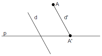 in a plane, for any point A and two given non-parallel straight lines d and p, unique intersection point A′ of the line p and the straight line d′ passing through the point A and parallel to the line d