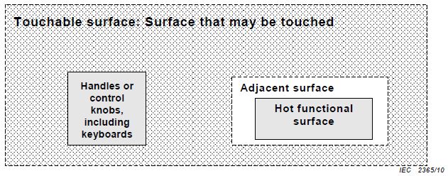 | Definition: | surface defined as touchable (or accessible) in the end-product standard, taking into account the intended installation of the equipment and surfaces within arm’s reach, other than: