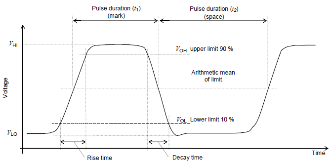 | Definition: | ratio between the time period (t1), in which the output voltage is above a specified level, and the time period (t2), in which the output voltage is below the specified level X Figure 17 – Characteristics of an output waveform Note 1 to entry: The symmetry is expressed in percent of the duration of the full signal period. Note 2 to entry: The specified level may be the arithmetic mean between levels VOL and VOH, or 50 % of the peak-to-peak amplitude. The ratio is expressed as: