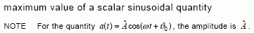 NOTE For the quantity a(t)= A ^ cos(ω t+ ϑ 0 ) MathType@MTEF@5@5@+= feaagKart1ev2aqatCvAUfeBSjuyZL2yd9gzLbvyNv2CaerbbjxAHX garuavP1wzZbItLDhis9wBH5garmWu51MyVXgarqqtubsr4rNCHbGe aGqipG0dh9qqWrVepG0dbbL8F4rqqrVepeea0xe9LqFf0xc9q8qqaq Fn0lXdHiVcFbIOFHK8Feea0dXdar=Jb9hs0dXdHuk9fr=xfr=xfrpe WZqaaiqaciWacmGadaGadeaabaGaaqaaaOqaaiaadggacaGGOaGaam iDaiaacMcacqGH9aqpceWGbbGbaKaajugabiGacogacaGGVbGaai4C aOGaciikaiabeM8a3jaayIW7caWG0bGaey4kaSIaeqy0dO0aaSbaaS qaaKqzadGaaGimaaWcbeaakiaacMcaaaa@4817@ , the amplitude is A ^ MathType@MTEF@5@5@+= feaagKart1ev2aqatCvAUfeBSjuyZL2yd9gzLbvyNv2CaerbbjxAHX garuavP1wzZbItLDhis9wBH5garmWu51MyVXgarqqtubsr4rNCHbGe aGqipG0dh9qqWrVepG0dbbL8F4rqqrVepeea0xe9LqFf0xc9q8qqaq Fn0lXdHiVcFbIOFHK8Feea0dXdar=Jb9hs0dXdHuk9fr=xfr=xfrpe WZqaaiqaciWacmGadaGadeaabaGaaqaaaOqaaiqadgeagaqcaaaa@3628@ .