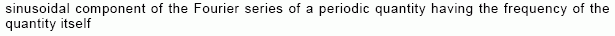 sinusoidal component of the Fourier series of a periodic quantity having the frequency of the quantity itself