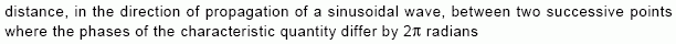 distance, in the direction of propagation of a sinusoidal wave, between two successive points where the phases of the characteristic quantity differ by 2π radians