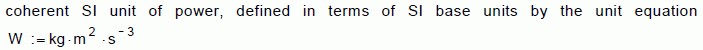 coherent SI unit of power, defined in terms of SI base units by the unit equation W := kg ⋅ m