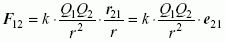 where F12 is the force exerted on the particle with electric charge Q1 by the particle with electric charge Q2 , k a positive constant, r21 the vector from the particle with electric charge Q2 to the particle with electric charge Q1, r = |r21| the distance between particles and e21 the unit vector r21/r