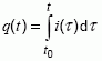 q(t)= ∫ t 0 t i(τ) dτ MathType@MTEF@5@5@+= feaagKart1ev2aqatCvAUfeBSjuyZL2yd9gzLbvyNv2CaerbbjxAHX garuavP1wzZbItLDhis9wBH5garmWu51MyVXgaruWqVvNCPvMCG4uz 3bqee0evGueE0jxyaibaieYdi9WrpeeC0lXdi9qqqj=hEeeu0lXdbb a9frFj0xb9Lqpepeea0xd9s8qiYRWxGi6xij=hbba9q8aq0=yq=He9 q8qiLsFr0=vr0=vr0db8meGabaGacmGadiWaaiWabaabaiaafaaake aacaWGXbGaaiikaiaadshacaGGPaGaeyypa0Zaa8qCaeaacaWGPbGa aiikaiabes8a0jaacMcaaSqaaiaadshadaWgaaadbaGaaGimaaqaba aaleaacaWG0baaniabgUIiYdGcciGGKbGaeqiXdqhaaa@49EF@