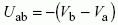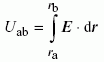 | grandeur scalaire égale à la circulation du champ électrique E le long d'un chemin donné reliant deux points a et b: