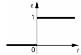 function, zero for all negative values of the independent variable and equal to one for all positive values Note 1 to entry: See Figure 1 below for a graphical representation of ε(t). The value ε(0) may remain undefined or may be defined according to the context. Note 2 to entry: ε(x − x0) denotes a unit step at the value x0 of the independent variable x. Note 3 to entry: Notation H(x) is also used. Notation ϑ(t) is used for the unit step function of time. Notation ϒ(x) has also been used.