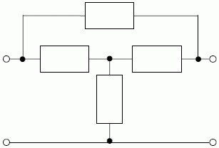 two-terminal-pair network composed of a T-network and a fourth branch connecting the two not directly interconnected terminals of the terminal pairs