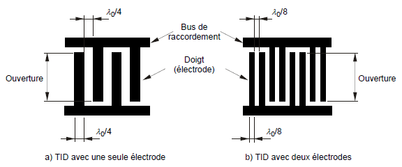 | région commune aux électrodes d’un TID qui relie les doigts entre eux et connecte aussi le TID à un circuit externe Note 1 à l’article: La configuration d’un TID est visualisée à la Figure 5. Un TID est utilisé essentiellement en technologie OAS.