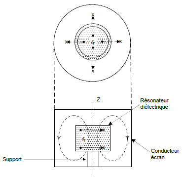 Figure 1 – Configuration d’un résonateur diélectrique (type de mode TE01δ)