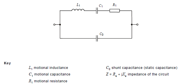 Figure 2 – Equivalent circuit of a piezoelectric vibrator (one-port resonator)