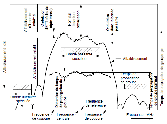 | fréquence de la bande passante à laquelle l’affaiblissement relatif d’un filtre piézoélectrique atteint une valeur spécifiée
