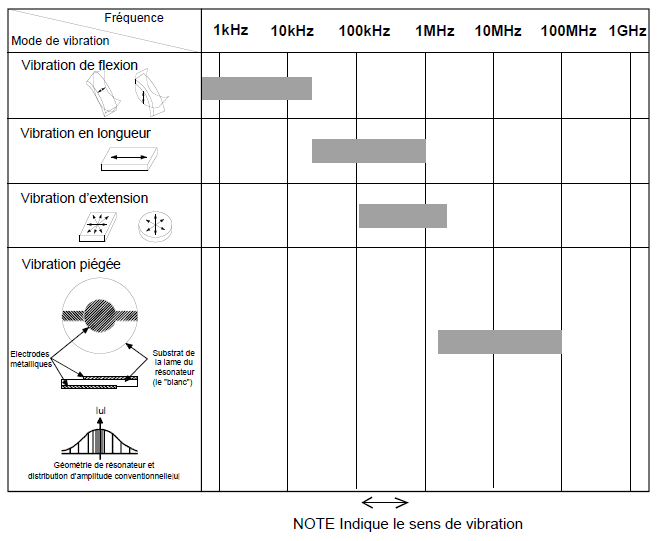 pour un résonateur ayant la forme d’une fine barre, déplacements apparaissant dans une direction perpendiculaire à la longueur de la barre